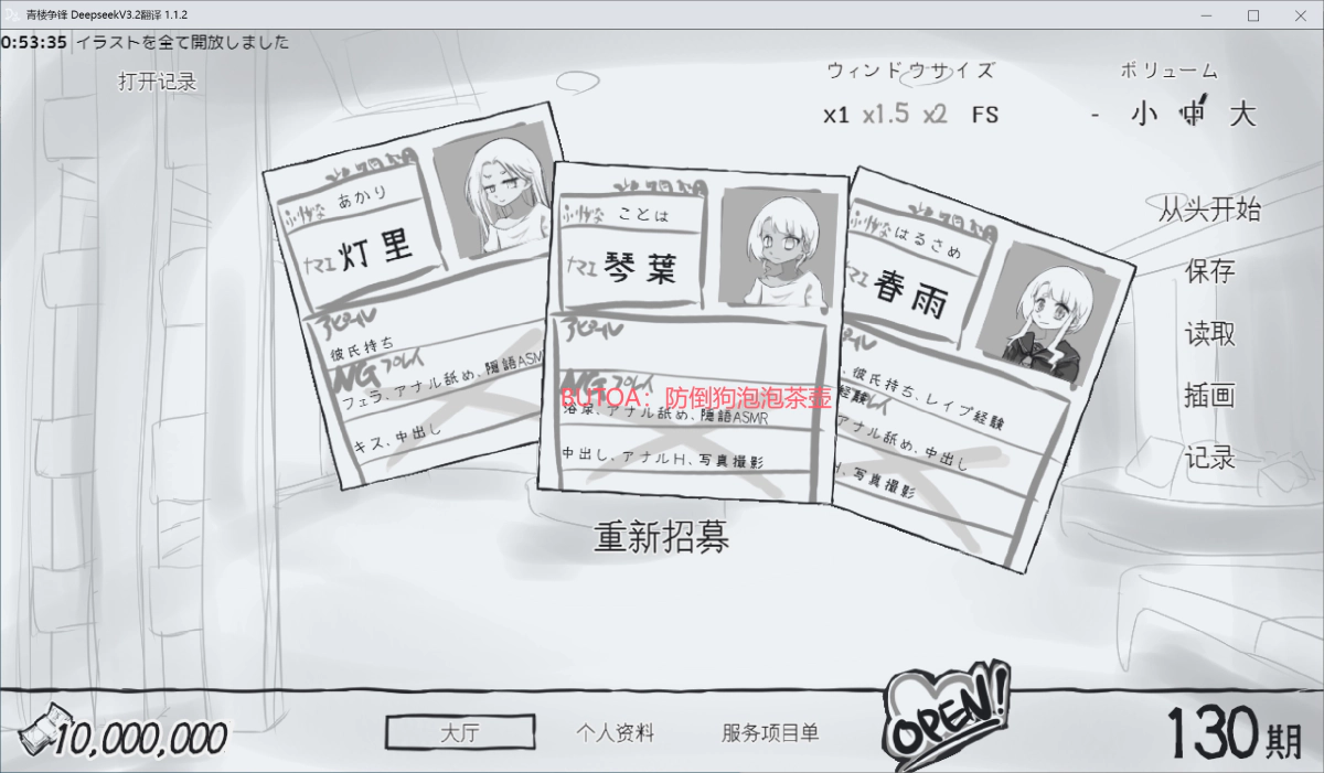 免责说明 本文由butoa原创,游戏资源转载自网络,DeepSeekV3.2翻译和封包由butoa独立完成,请于下载后24时内删除。 作品介绍 社团名handMadeGames发售日2025年07月29日更新信息2025年08月04日 更新信息年龄指定R18作品形式模拟有音乐文件形式软件支持的语言日语分类特殊癖好/变态 萝莉 风俗/泡泡浴 调教 怀孕 西瓜肚/孕妇文件容量141.11MB 作品概要・青楼经营模拟游戏・妓女随机生成・接客采用卡牌对战形式・通关时可解锁全部插画体验版可游玩至结局存档数据可继承至正式版仅收录部分插画(约10张)运行环境本作品使用「RPG Maker MZ」制作。运行环境与「RPG Maker MZ」要求一致。建议通过体验版在购买前确认运行情况。更新信息2025年08月04日 修正错字/BUG修复/内容追加通关特典新增「解除各类限制」修复脱下能量饮料后光标移至妓女列表会报错的问题 游戏截图 下载链接 已放入全CG存档~感兴趣的小伙伴,自行体验吧~ 碎碎念一句:请各位转载的时候晚个1-2天,不要修改翻译文件,竭泽而渔不可取,谢谢! 文件序列:G251240游戏名:デュエル娼館译名:青楼争锋文件大小:877 MB上传时间:2025年11月20日 DLsite链接 (以后在我文章下面比较好的留言,比如游戏攻略或者存档,汉化BUG汇报,游戏感想等等~会不定期送点小福利,记得留意私信哈~~) ENC文件解密程序文件需要以下程序进行第一次解密ENC解密程序下载:https://pan.baidu.com/s/1a4nNQXvtrXJVZHRffH_CkA?pwd=109j密码:acgbuster 您需登录并关注本文作者后才能阅读此隐藏内容请先登录登录立刻注册
