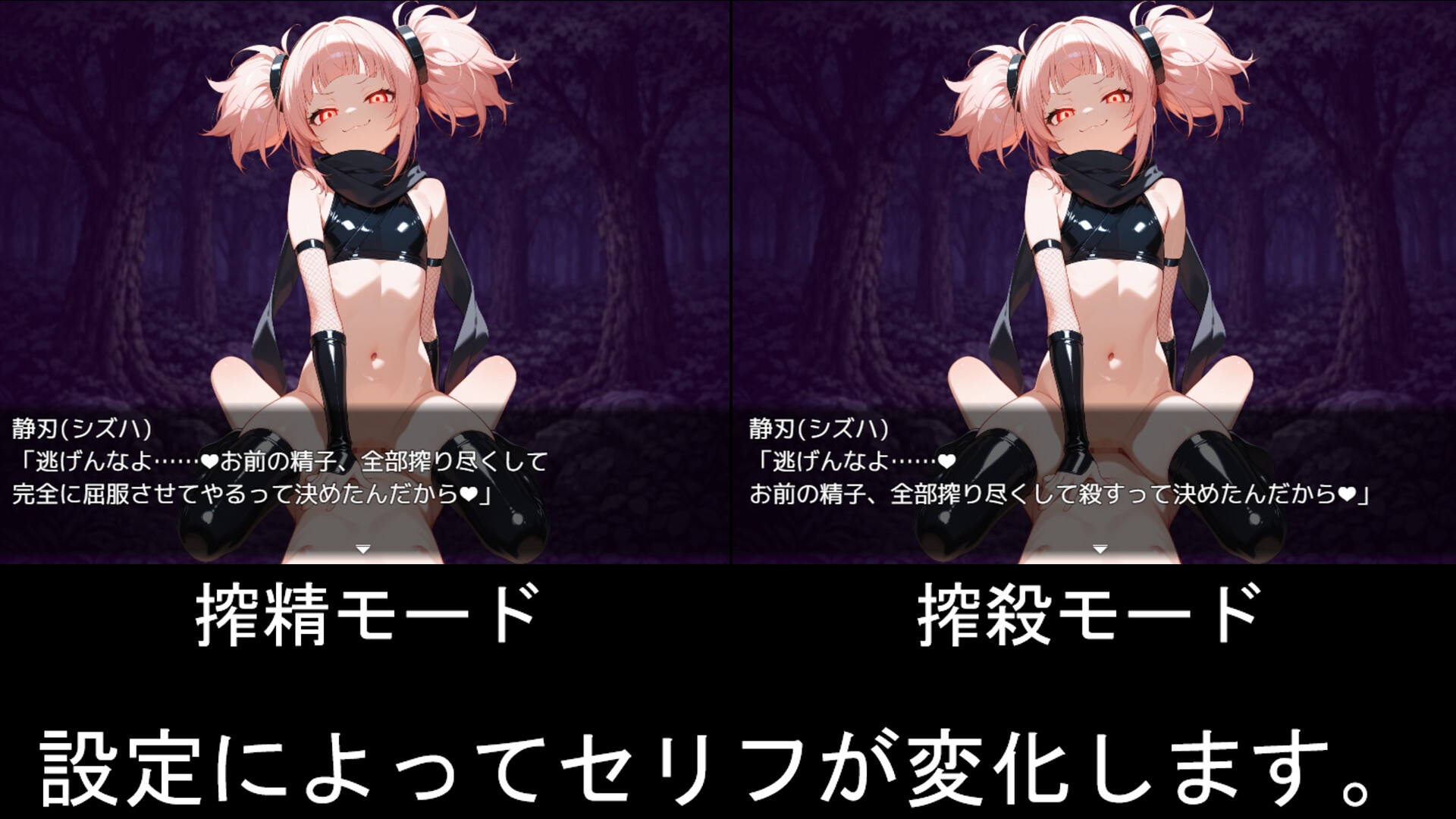 (1)このゲームに登場する搾精くのいちはStable Diffusionで生成したキャラクターをPhotoshopで加工・加筆修正しています。